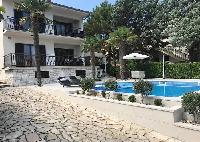 A 2 hálószobás Haus Tanja Villa Malinska tengerre néző teraszt, valamint magán úszómedencét biztosít.